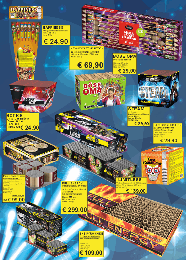 Wir von THS Flotz zeichnen uns durch erstklassige Feuerwerkskörper aus, die für spektakuläre und sichere Shows sorgen. Unsere Produkte sind bekannt für ihre brillante Qualität und atemberaubenden Effekte, die jedes Event zu einem unvergesslichen Erlebnis machen.